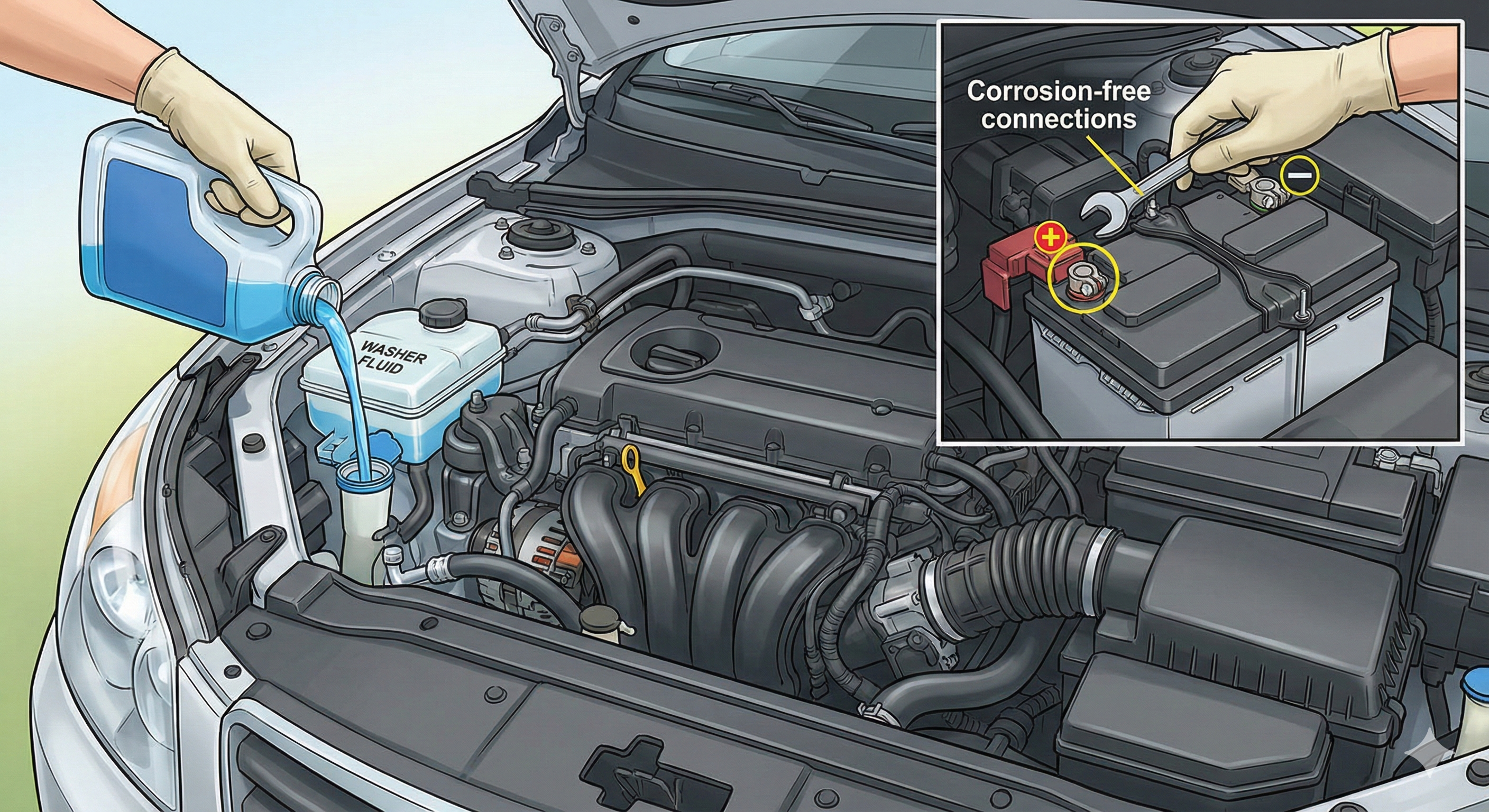 液が不足している場合は、水道水でも代用可能です。満タンにしておけば、検査官がスムーズに確認作業を進められます。冬場は凍結防止のため、専用の液を入れるのが無難です。液が入っているのに出ない場合は、ノズルの清掃やホースの抜けを確認します。
